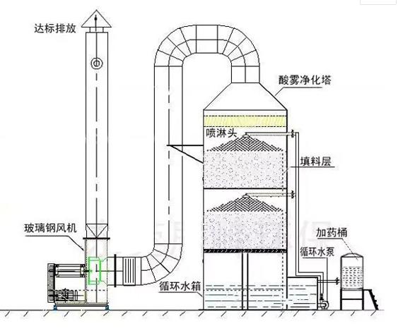 廢氣噴淋塔是酸霧廢氣由風(fēng)管引入凈化塔,經(jīng)過填料層,廢氣與氫氧化鈉吸收液進(jìn)行氣液兩相充分接觸吸收中和反應(yīng),酸霧廢氣經(jīng)過凈化后,再經(jīng)除霧板脫水除霧后由風(fēng)機排入大氣,達(dá)到凈化結(jié)果。廢氣處理凈化效果圖如下: