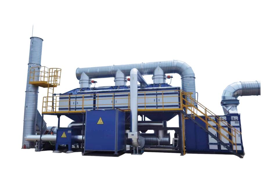 經(jīng)氧化分解的高溫廢氣進(jìn)入低溫蓄熱體填充層,將熱能傳遞給蓄熱體后通過切換閥排放到大氣中,其排放溫度僅略高于廢氣處理前的溫度。
