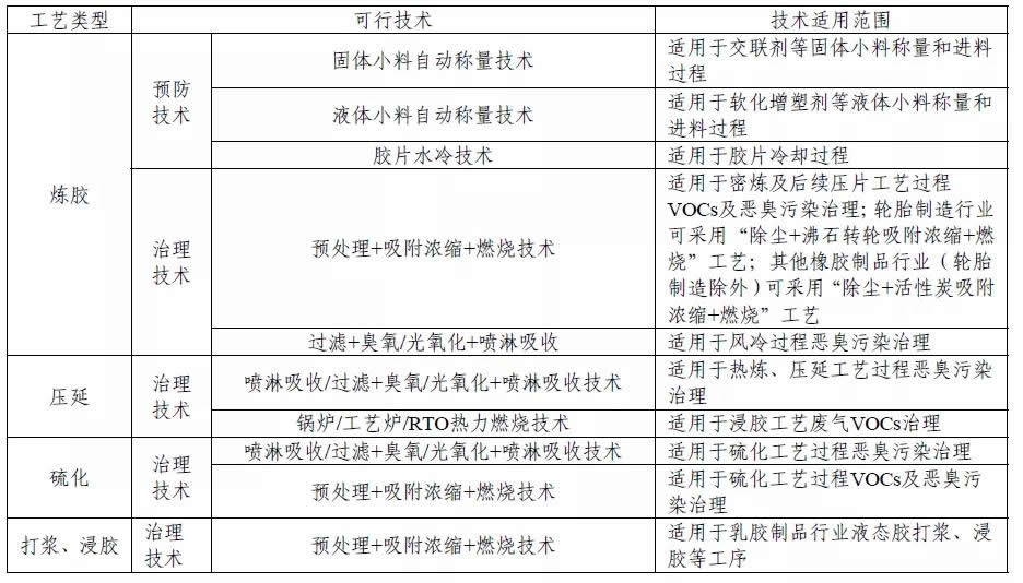 下面分享橡膠制品業(yè)VOCs 污染治理可行技術(shù)組合表,如下: