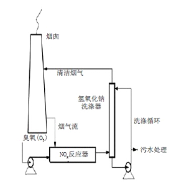 脫硝技術(shù)是利用現(xiàn)有煙氣脫硫除塵工藝中原有設(shè)備作為脫硝反應(yīng)器,將氧/臭氧混合氣注入煙道,將NOX氧化成高價(jià)態(tài)且易溶于水的N2O3和N2O5,然后通過(guò)洗滌形成HNO3。