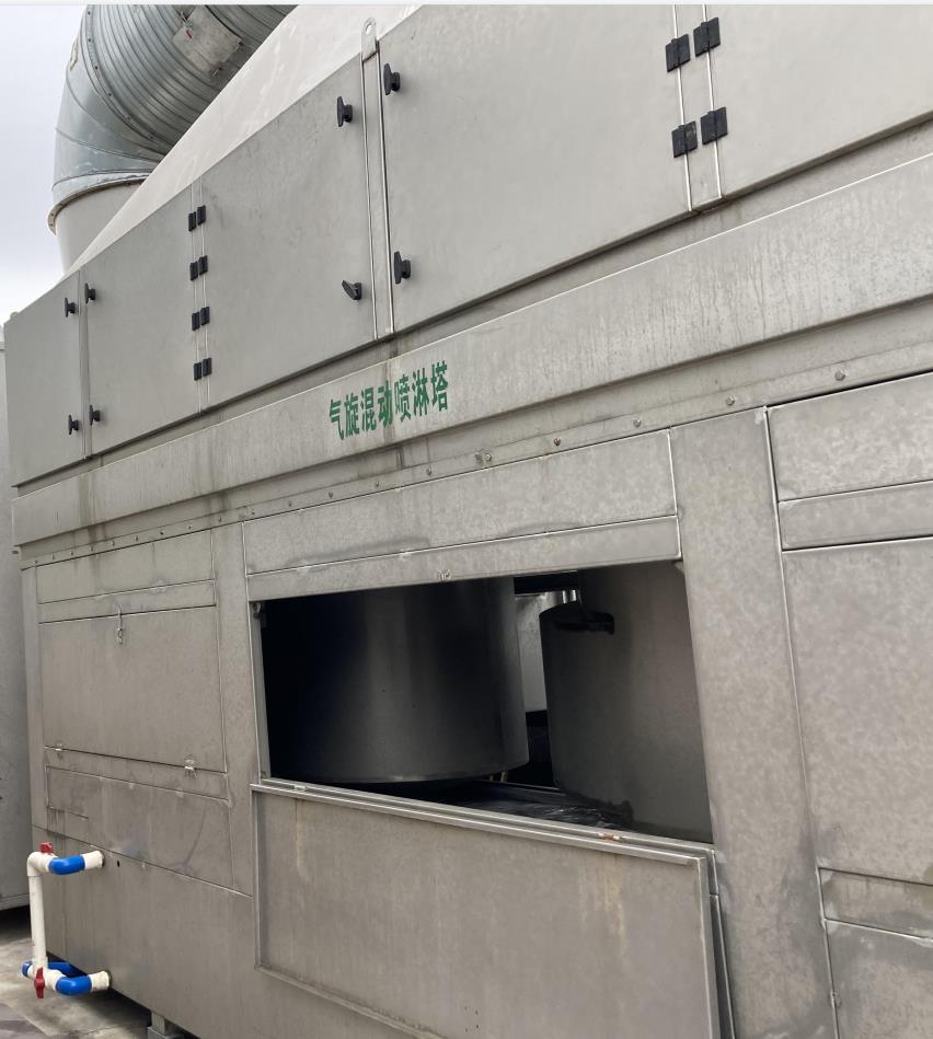 原理簡述:氣旋噴淋塔在離心力作用下,含塵氣體呈橫向向心運(yùn)動,含塵氣體停留時間更長,洗滌效果更好,徹底改善了噴淋塔在某些特定工況下存在的除塵不徹底、水噴淋塔容易堵塞等技術(shù)缺陷。產(chǎn)品采用專利技術(shù),避免水泵及噴頭的堵塞,大大提高生產(chǎn)效率,其中水池的水可循環(huán)使用,避免產(chǎn)生二次污染造成的困擾,更節(jié)約了水資源。氣旋塔內(nèi)安裝有1個或2個“圓形旋流桶”和高效除霧板。旋流桶內(nèi)放有實心填料球,上層的除霧板用來凈化水霧,達(dá)到脫水霧的目的,含塵氣體在塔內(nèi)旋流上升、并在各板上與由塔頂進(jìn)入的液體旋流接觸,完成除塵任務(wù);通過離心力的作用,廢氣中的大顆粒沉入水池, 由人工撈出清理機(jī)殼,這樣氣體得到凈化,同時氣旋塔內(nèi)的水可以繼續(xù)循環(huán)使用。