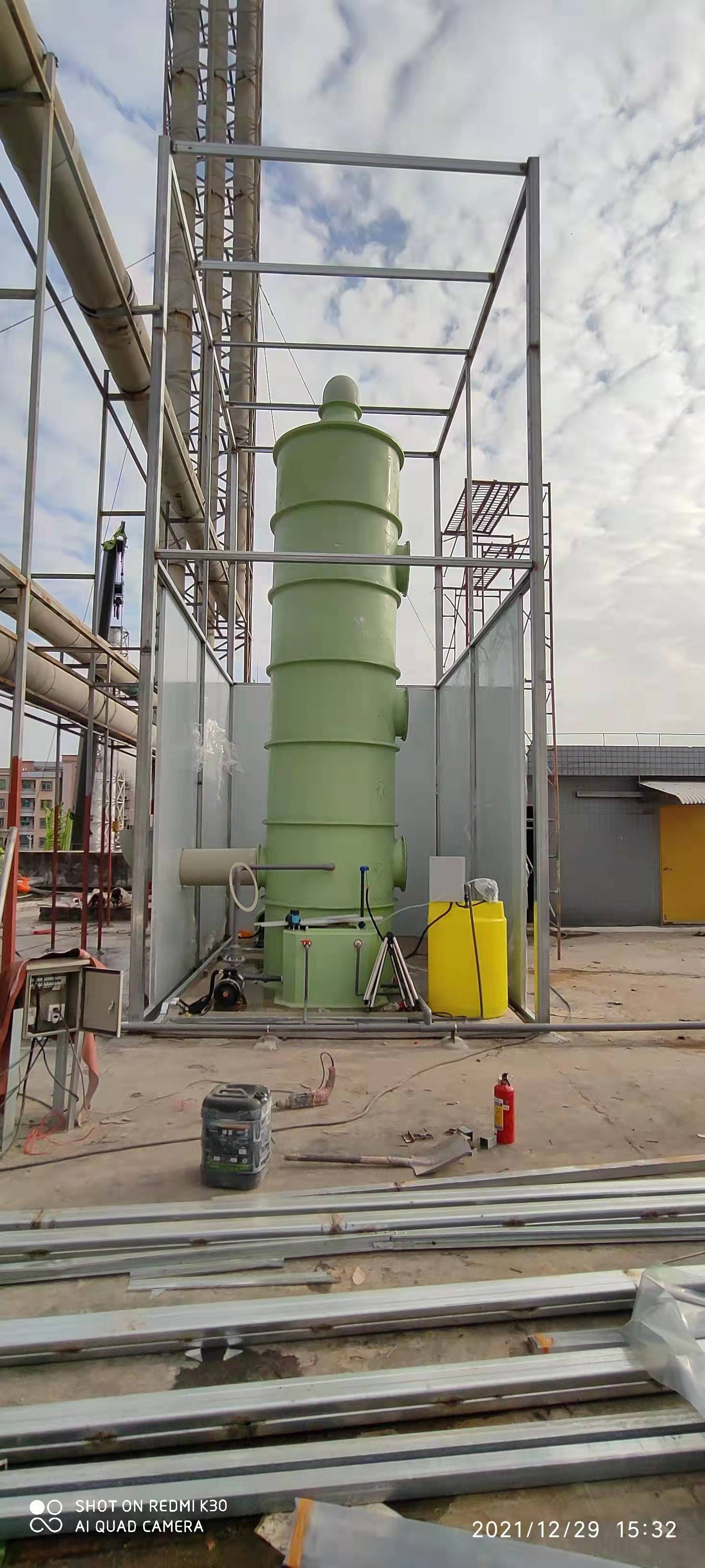 酸堿廢氣處理(噴淋塔)主要的運(yùn)作方式是不斷酸霧廢氣由風(fēng)管引入凈化塔,經(jīng)過填料層,廢氣與氫氧化鈉吸收液進(jìn)行氣液兩相充分接觸吸收中和反應(yīng),酸霧廢氣經(jīng)過凈化后,再經(jīng)除霧板脫水除霧后由風(fēng)機(jī)排入大氣。吸收液在塔底經(jīng)水泵增壓后在塔頂噴淋而下,回流至塔底循環(huán)使用。凈化后的酸霧廢氣達(dá)到全國排放標(biāo)準(zhǔn)的排放要求,低于國家排放標(biāo)準(zhǔn)。
